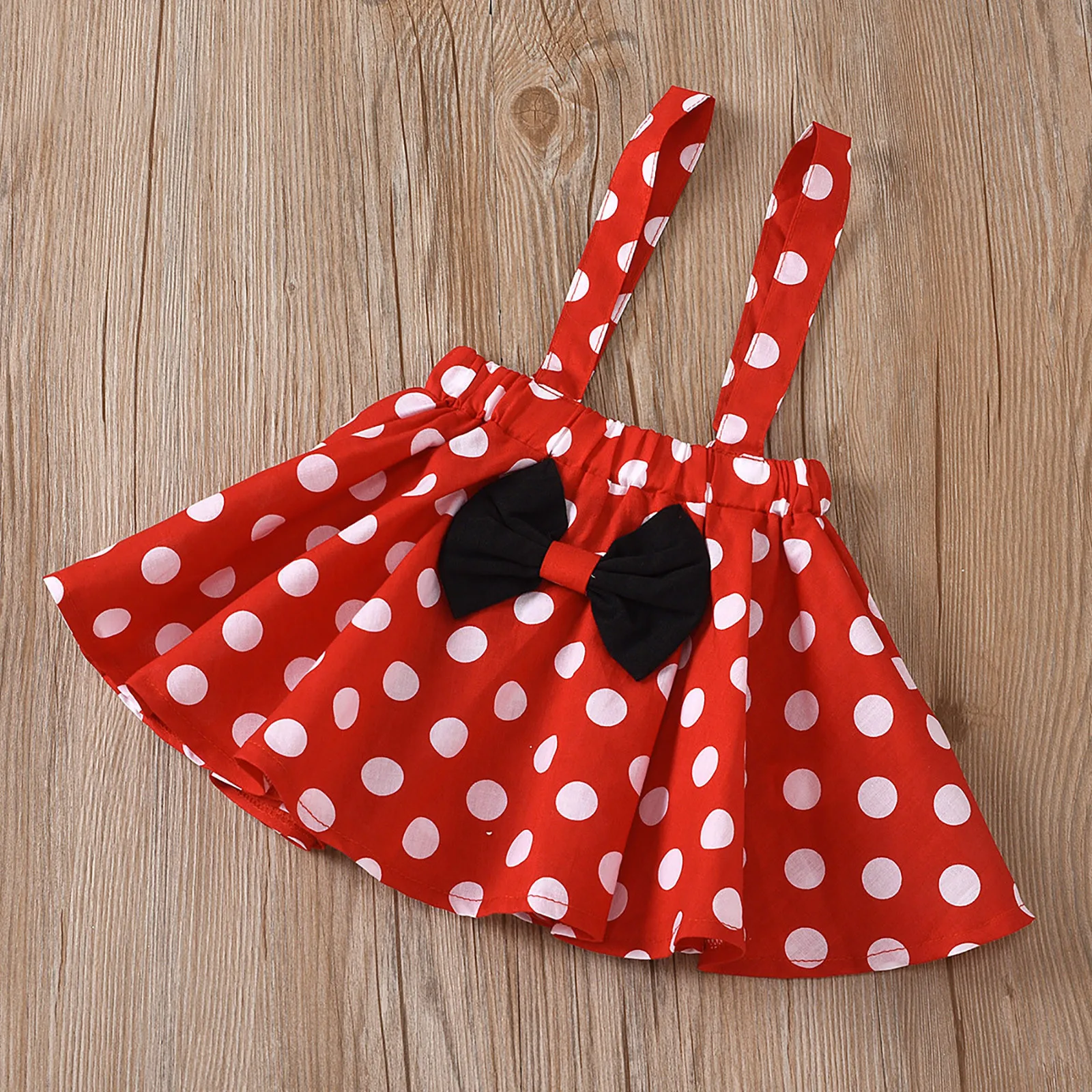 Toddler Girls Long Sleeve Dot Prints Ruffles Tops Suspenders Skirt Headbands Three Piece Outfits