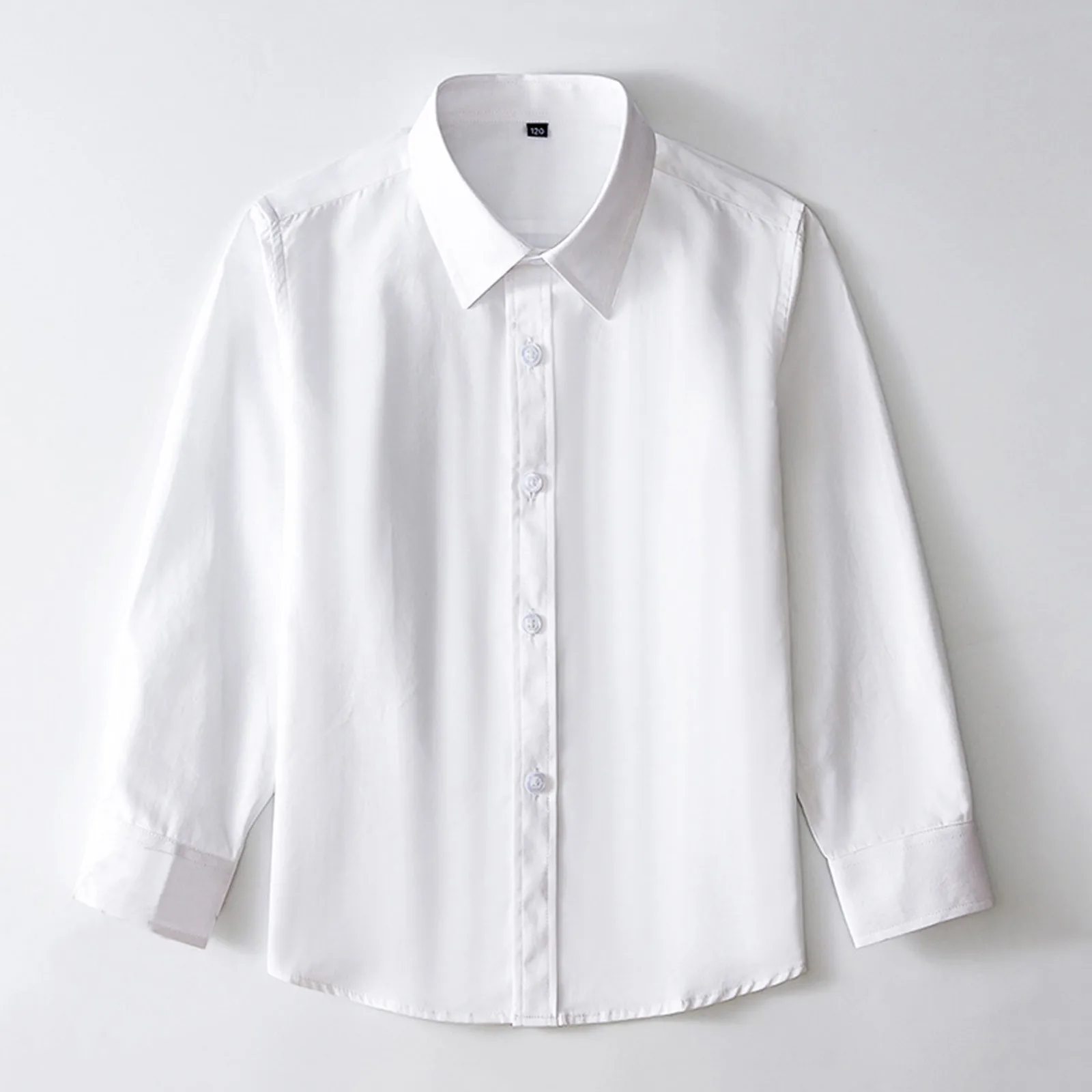 Boys Blouse Shirt Long Sleeve White Shirt Solid Boutique Formal Top For 4-13 Year Kids Teen Clothes Birthday Party Summer Autumn
