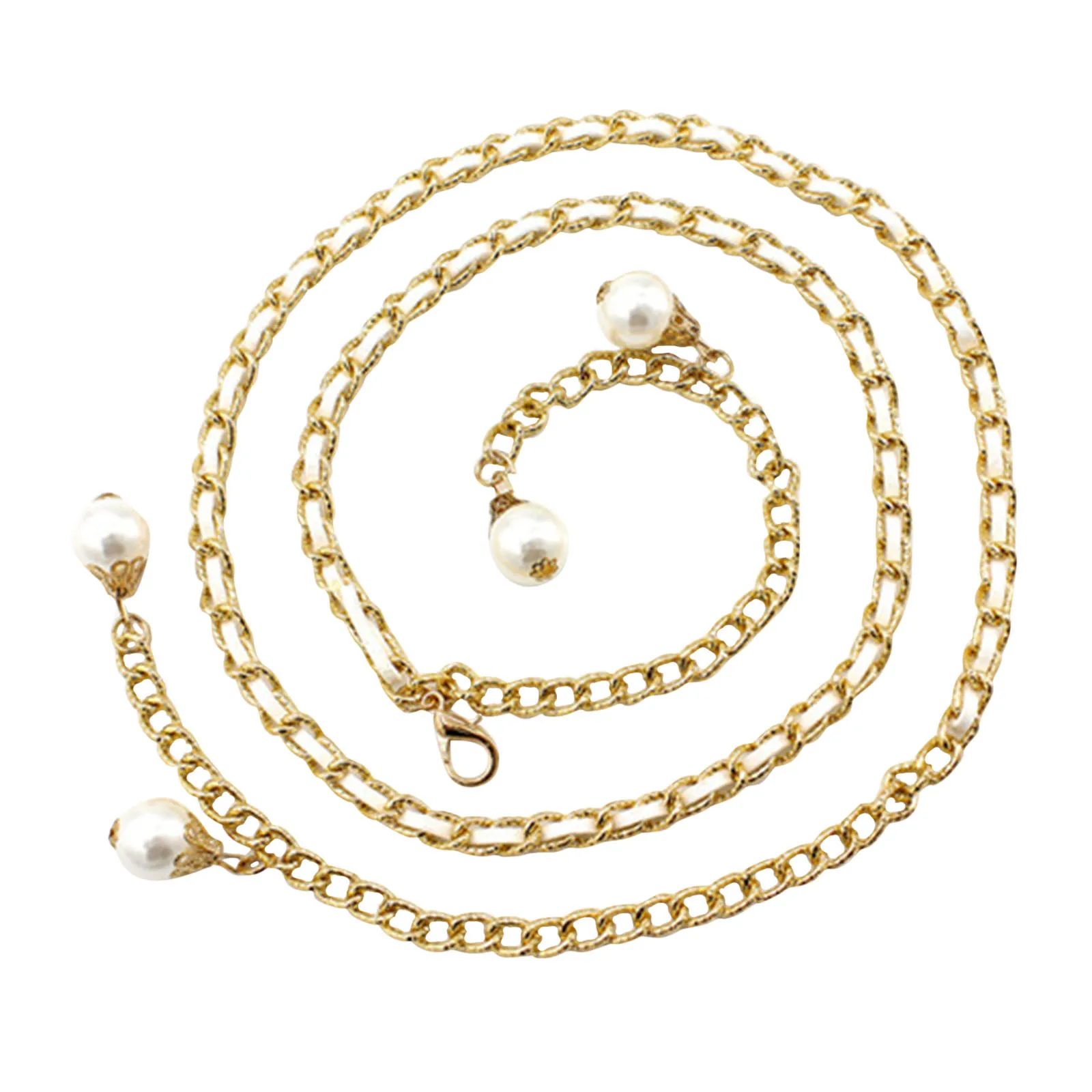 Elegant Pearl Thin Belts For Women Long Pearls Chain Metal Hook Dress Belts Summer Waistband Adjustable Elastic Belts 120*0.8cm