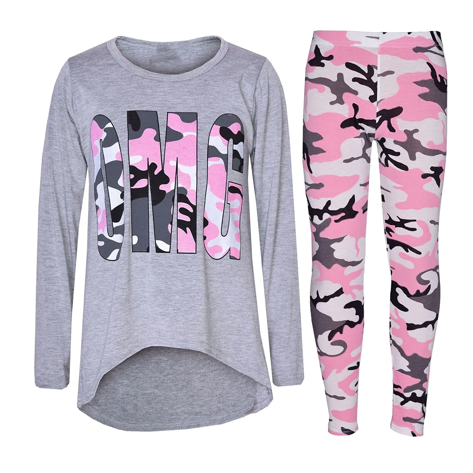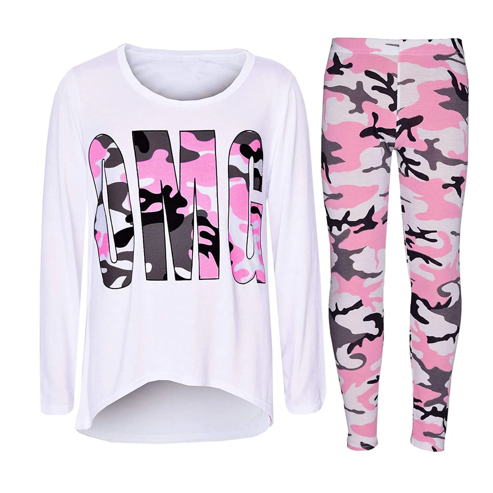 Girls Clothing Sets Spring Camouflage T-shirt Print For Girls And Boys From 5 to 13 Years Long Sleeve Suit Children Tracksuit