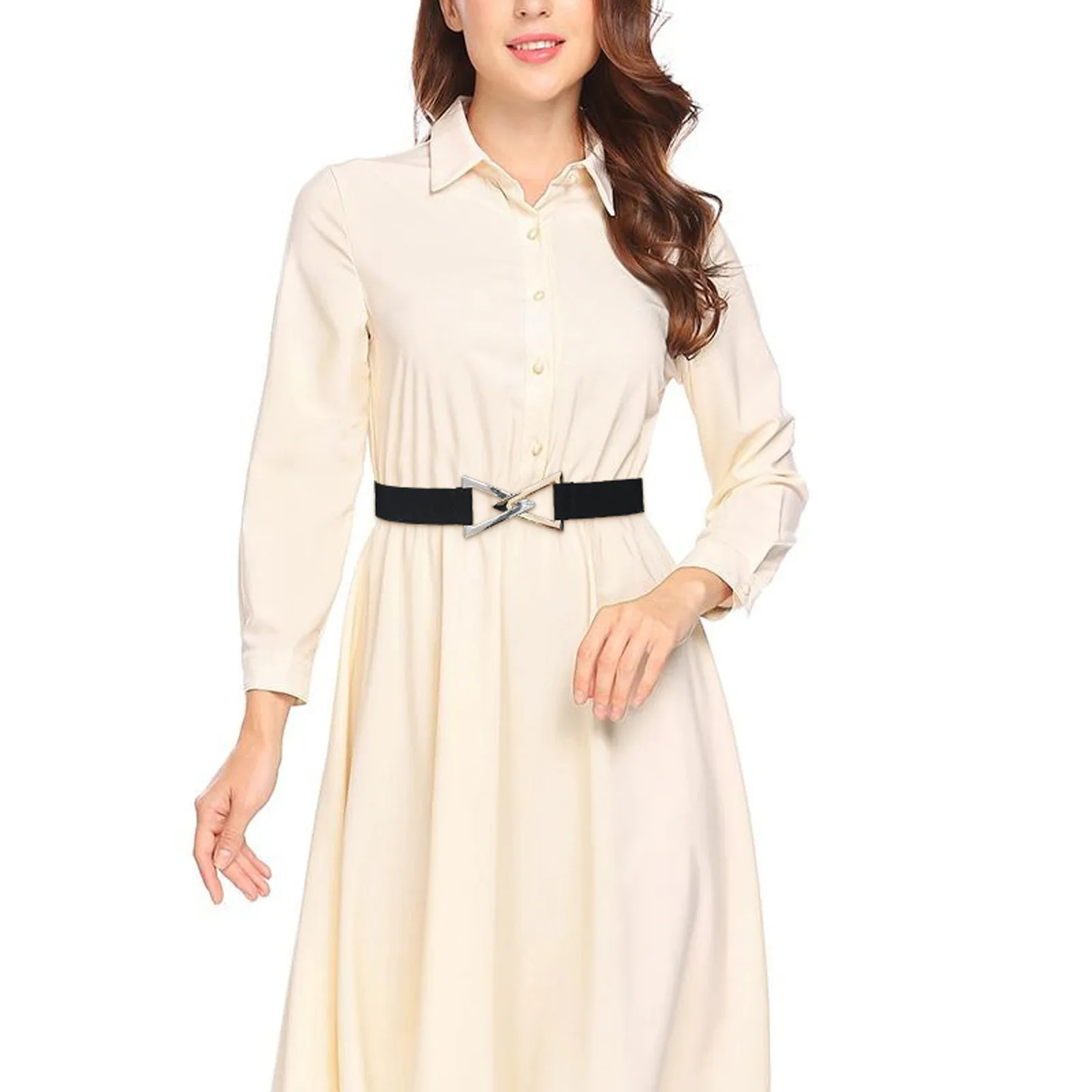 Fashion Lady Wide Belts Women Wide Elastic Belt Buckle Waist Dress Stretch
