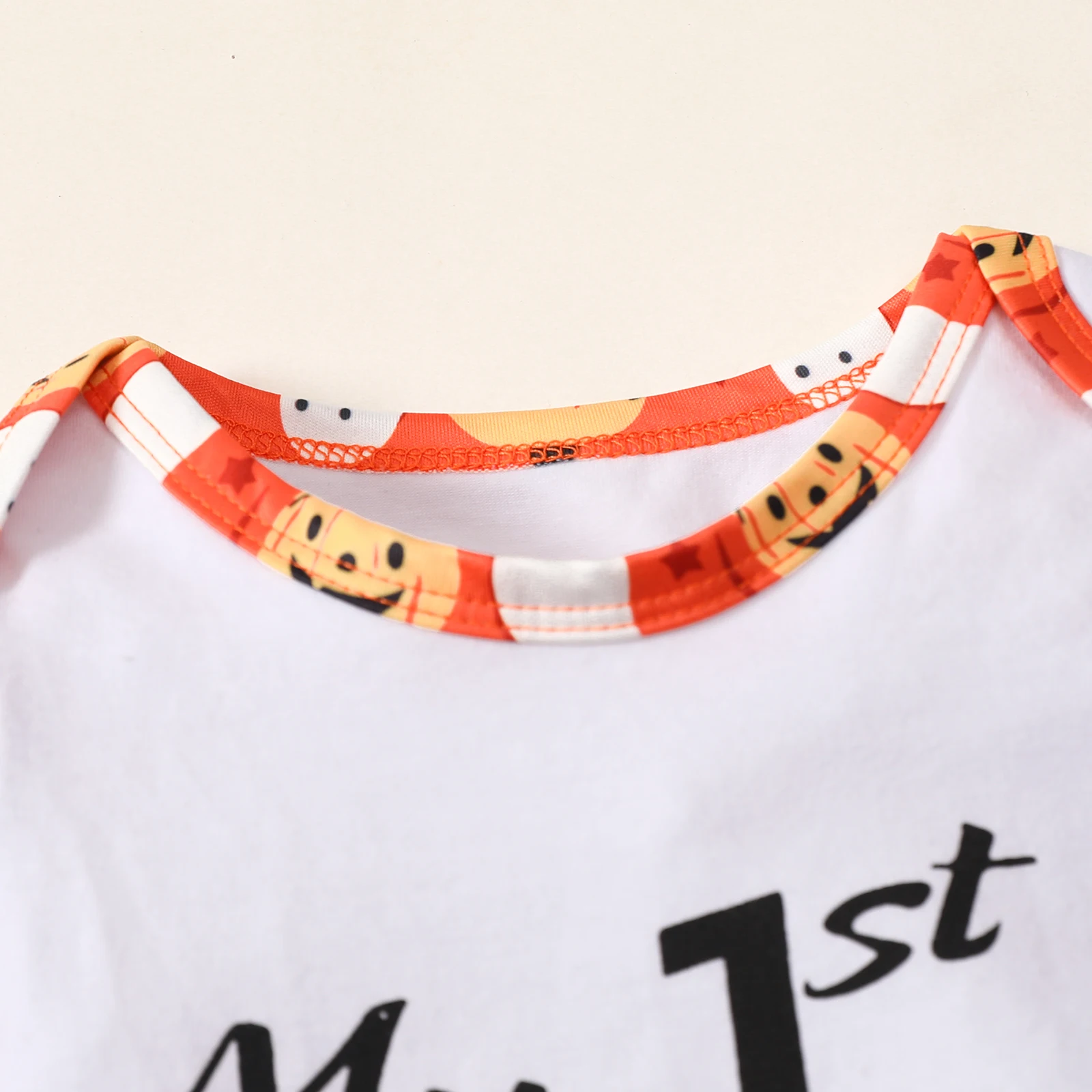 Toddler Baby Girls Boys Halloween Romper + Pants, Horizontal Stripes Pumpkin Print Spring Clothing