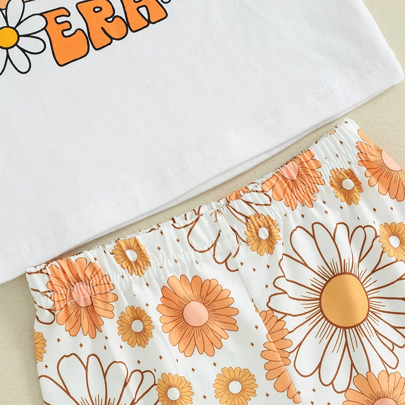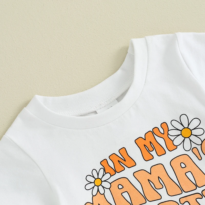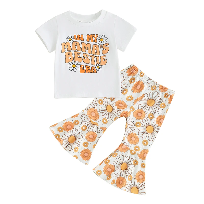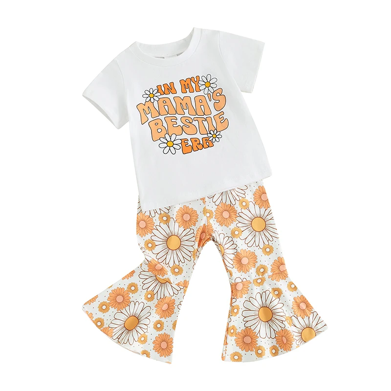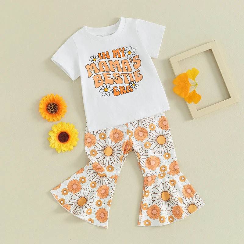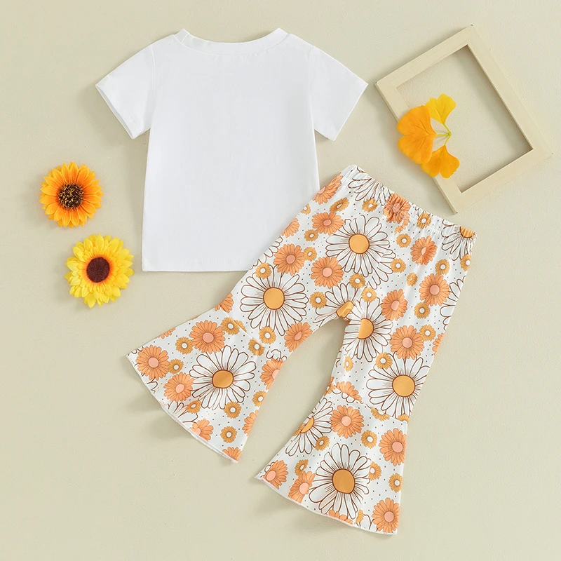 Toddler Kids Baby Girls Summer Clothes Letter Floral Print Short Sleeve T-shirts+Flare Pants Children Holiday Beach Clothing